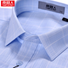 南极人男士短袖衬衫夏商务休闲蓝纯色青年正装中年爸爸装格子衬衣