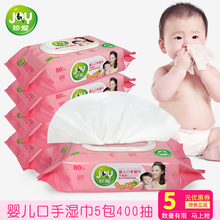 珍爱婴儿口手湿巾80片x5包宝宝湿纸巾新生儿湿巾纸家庭装包邮