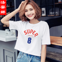 露脐韩版上衣白色短款t恤女短袖夏宽松学生高腰漏肚脐小圆领体恤