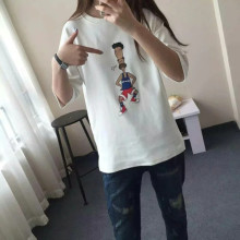 清 春秋卡通印花五分袖T恤短袖宽松女
