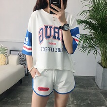 2017夏季新款韩版宽松显瘦字母印花休闲套装短裤短袖纯棉百搭上衣