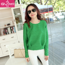 韩版女装春款女士宽松套头长袖短款T恤褶皱外穿打底衫女衣服潮