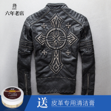 2017真皮皮衣 男士修身型立领机车皮夹克短款外套 头层牛皮刺绣