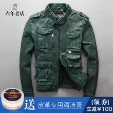 男式皮衣春季新款山羊皮做旧猎装立领真皮皮衣修身款皮夹克男外套