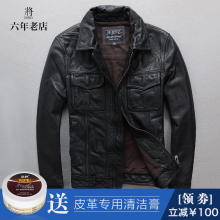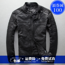 2017春季新款男士真皮皮衣修身复古钢印磨边牛皮皮夹克机车大码男
