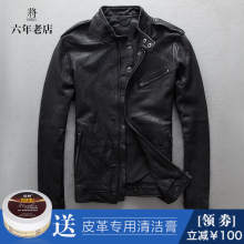 2017男士皮衣春款真皮皮衣绵羊皮立领短款机车皮衣修身羊皮夹克男