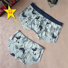 包邮性感豹纹情侣款冰丝无痕内裤男士平角女士三角短裤莫代尔棉