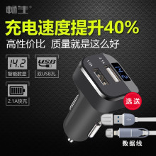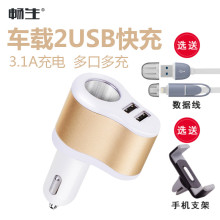 车载充电器 带2USB 一拖一点烟器 车充 2.1A手机平板快充转换插头