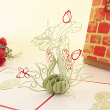 立体荷花 创意DIY手工立体纸雕贺卡祝福卡商务送爸爸父亲节礼物品