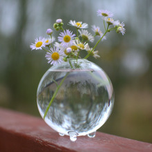 Manley现在简约圆形透明玻璃花瓶 办公室装饰摆件 水培植物花瓶