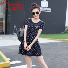 浣纱溪2016夏装新款连衣裙少女宽松大码中长裙学生短袖T恤A字裙