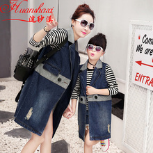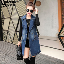 2016春秋新款韩版大码牛仔马甲女中长款时尚牛仔无袖背心马夹外套