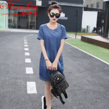 浣纱溪2017夏装新款韩版胖mm宽松牛仔连衣裙女休闲大码a字裙子潮