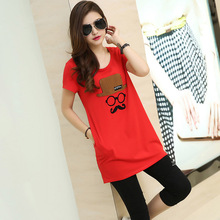 2017宽松t恤女夏装短袖上衣新款韩版套装中长款显瘦大码两件套装