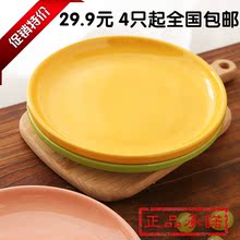 美嘉 彩色陶瓷早餐平盘 清新多色陶瓷盘子 盘子 西餐盘满包邮
