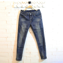 日系男士九分牛仔裤 破洞乞丐束脚裤小脚9分收脚牛仔裤男哈伦裤潮