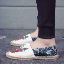 夏季亚麻帆布鞋男鞋休闲鞋草编老北京布鞋学生潮一脚蹬懒人渔夫鞋