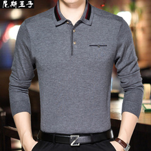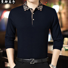 尼斯王子春装中老年男士薄款长袖t恤翻领大码商务体恤衫爸爸装