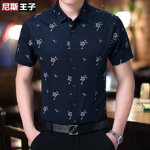 爸爸装中年男装短袖T恤衫新款薄款男士印花短袖衬衫商务男士衬衣
