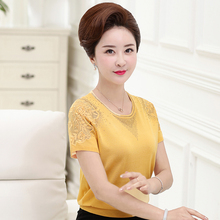 妈妈夏装上衣女40-50岁2017夏新款中年妈妈短袖T恤女针织衫桑蚕丝