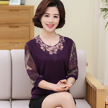 妈妈装春装打底衫纱袖七分袖T恤中老年女装针织衫套头上衣2017夏