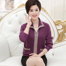 中老年女装春秋装外套针织衫加厚妈妈装羊毛衫冬中长款毛衣开衫女
