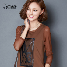 特价清仓 镶钻PU皮袖 薄款打底衫女长袖潮时尚拼接小衫