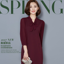 2017春装新款女装潮韩版女士连衣裙中年 修身显瘦印花a字裙连衣裙