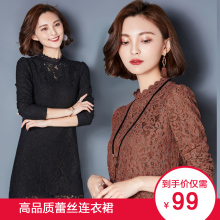 立领蕾丝连衣裙2017春装新款潮 修身显瘦a字裙打底衫中长款裙子