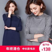 冬季新款韩版中长款半高领套头毛衣女外套宽松显瘦长袖针织打底衫