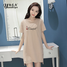 女装新款2017夏季宽松韩版中长款体恤女纯棉印花长款短袖t恤裙
