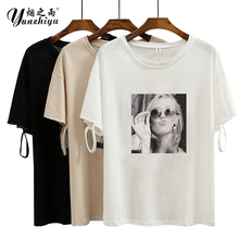 烟之雨韩版新款短袖T恤女夏装宽松白色纯棉打底体恤破洞印花上衣