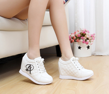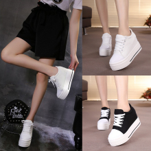 2016夏休闲鞋隐形内增高女鞋10cm帆布鞋坡跟小白鞋8cm厚底松糕鞋