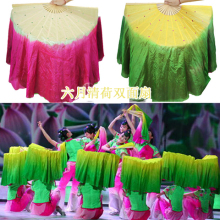 舞蹈扇子六月清荷双面双色舞蹈扇跳舞扇渐变绸加长秧歌扇子道具