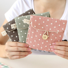 韩国清新波点棉麻卫生巾收纳包卫生棉袋 零钱袋 随身小物品储存包