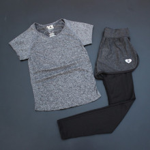 春夏健身健身房运动短袖T恤套装女跳操跑步服瑜伽上衣速干裤紧身