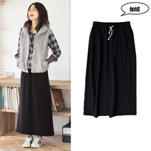16年秋冬日本原单半身裙女士松紧腰休闲百搭毛圈棉中长款裙加绒