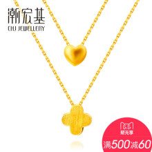 潮宏基珠宝 四叶草之恋黄金项链双层链女足金锁骨链套链工费180