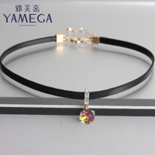 雅美嘉幻彩水晶颈链项圈 日韩锁骨项链女 简约颈带choker皮绳挂件