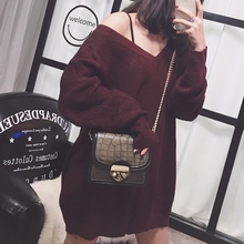 MIKEY 2016秋冬新款鳄鱼纹水桶包时尚复古链条单肩斜挎小包潮女包