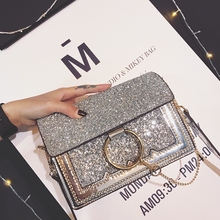 MIKEY 2017新款潮流女包铆钉闪粉单肩包亮面链条小猪包锁扣斜挎包