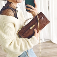 MIKEY 冬季新款鳄鱼纹小方包锁扣复古定型链条迷你单肩斜挎潮包女
