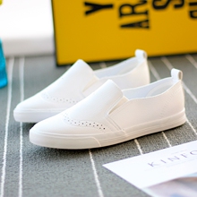 人本单鞋女平底皮面懒人百搭2017春季新款韩版潮休闲学生小白鞋子