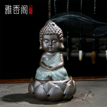 弥勒陶瓷倒流香炉创意仿古檀香香薰炉佛教用品摆件紫砂熏香炉套装
