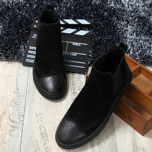 春秋布洛克雕花马丁靴男靴子韩版潮流短靴拉链英伦尖头内增高青年
