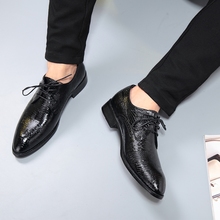 男士皮鞋英伦真皮青年发型师商务正装尖头系带鳄鱼纹皮鞋男内增高
