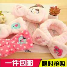 家用粉色毛绒刺绣运动束发带 韩版可爱卡通大蝴蝶结洗脸洗头发带