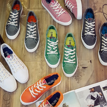 春夏学生帆布鞋女平跟经典小白鞋女糖果色系带韩版潮学院风布鞋女