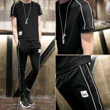2017短袖休闲运动套装男士薄款t恤两件套九分裤潮流学生夏装一套
