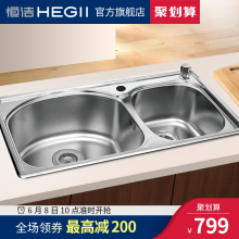 HEGII恒洁 304不锈钢一体成型加厚双槽厨房水槽洗菜盆洗碗池HB-41